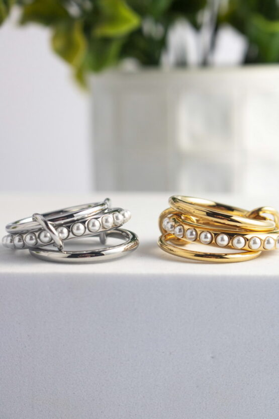 Τρίβερο Stainless Steel Δαχτυλίδι Με Πέρλες Σχέδιο 4
