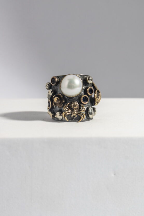 Two Tone Δαχτυλίδι Κοχύλι με Αστερία και Περλίτσες