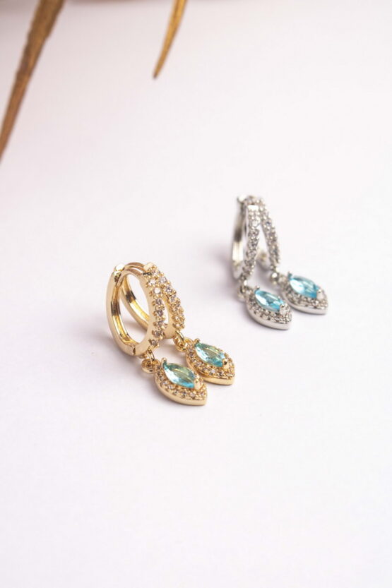 Χρυσά Κρικάκια με Τυρκουάζ Ματάκι Σκουλαρίκια