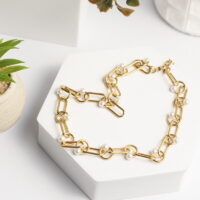 Υπέροχο κολιέ με πέρλες κατασκευασμένο από ανοξείδωτο ατσάλι.