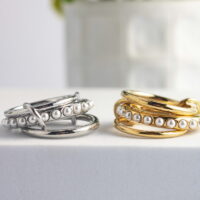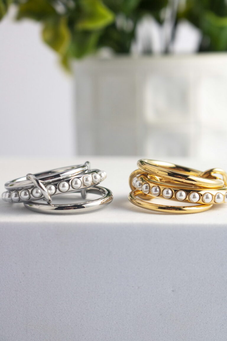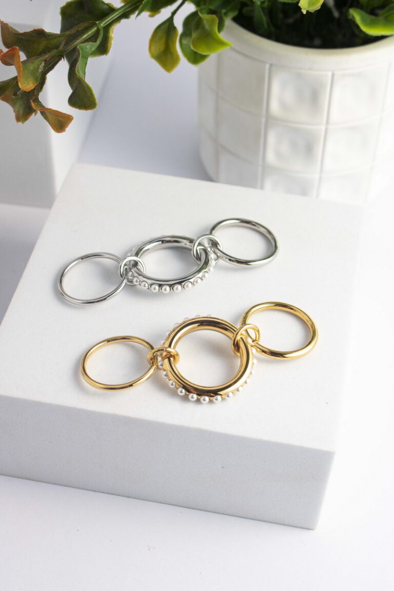 Εντυπωσιακό δίβερο δαχτυλίδι από ανοξείδωτο ατσάλι, με την μια βέρα γεμάτη με πέρλες.